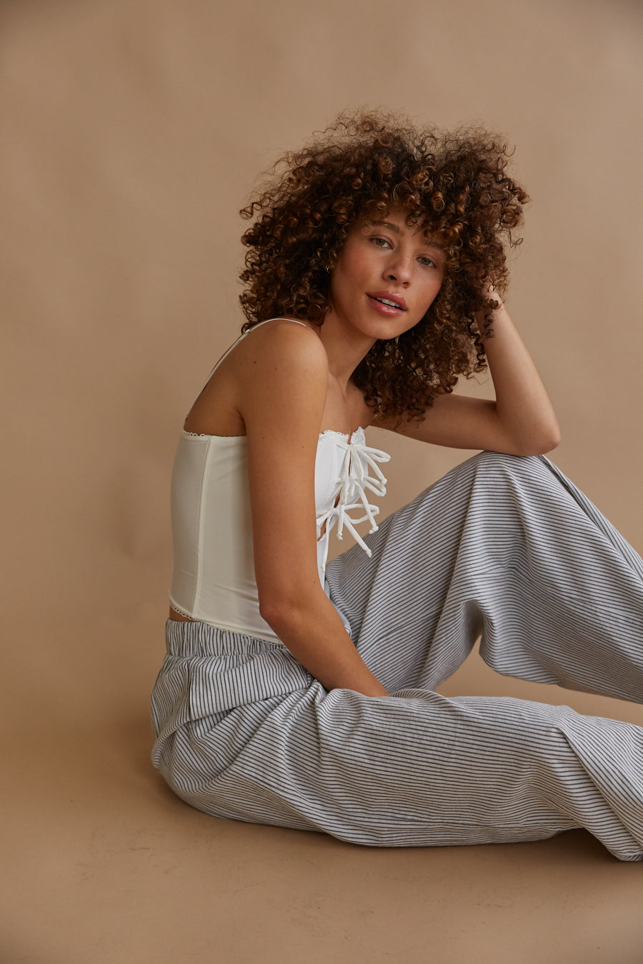 Create an unforgettable look with the Amelie Eyelet Trim Bow Corset Top! This sweet and sultry top features a corset-style bodice, deep notched neckline with 3 bow details, adjustable spaghetti straps, and an eyelet lace trim. Style with some to complete the look!
