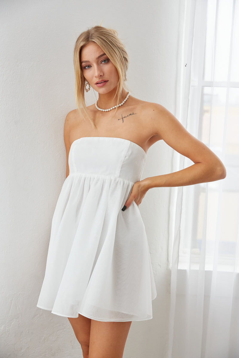 Life of the party in the Bella Strapless Babydoll Dress! This black dress is fully lined with an organza overlay. Pair with some for a trendy take on a classic style!