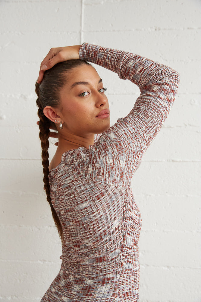 Hey babe, meet the Elsie Knit Mini Dress! This flirty piece is complete with an open sweetheart neckline, a side slit detail for a peek of leg, and a soft rib knit fabric for a flattering silhouette. Available in a brown.